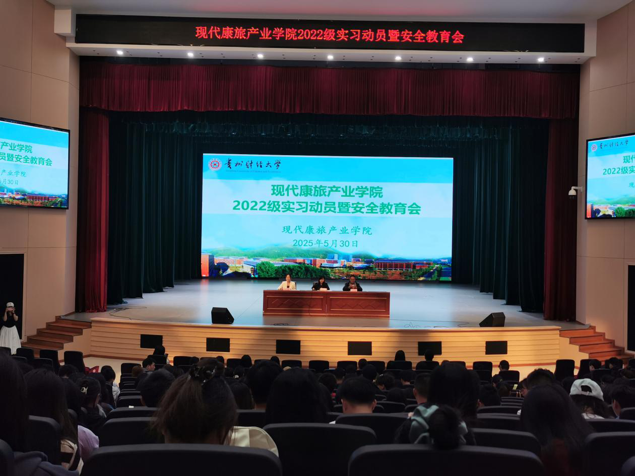 于西区学生活动中心召开2022级实习动员暨安全教育会。学院党委副书记韩艳、副院长(主持工作)王超、酒店专业负责人朱靓、实践科、学生科、全体2022级学生参加,共话实习规划,筑牢安全防线,为即将开启的实习之旅保驾护航。会议由朱靓主持。