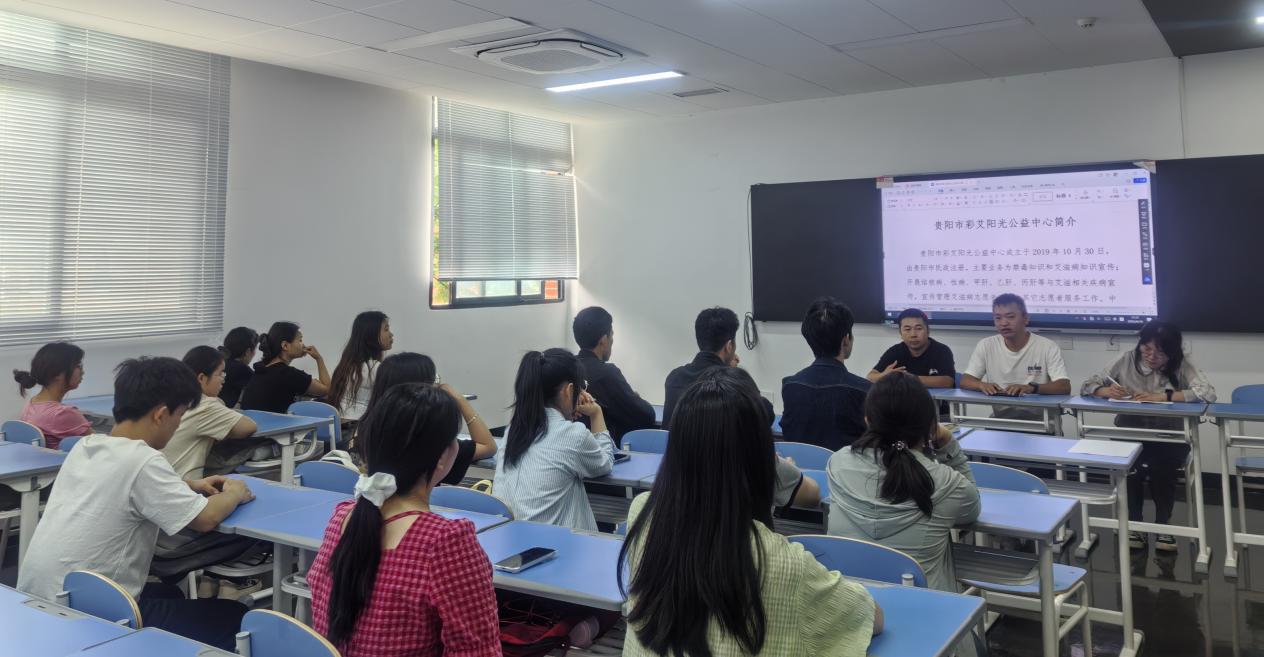 召开2022级社会工作专业实习双选会,贵阳市彩艾阳光公益中心主任王文文、副主任江应波,学院社会工作专业负责人邢溦及2022级社会工作专业学生参会。