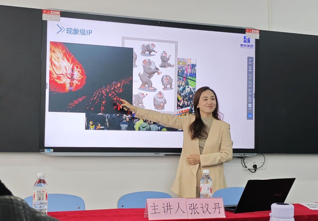 宣讲会上,张议丹老师系统解读了集团的战略定位,肩负着“贵州旅游专业运营主体”和“全域旅游集成服务商”的重要职责。作为推动贵州旅游产业高质量发展、助力打造世界级旅游目的地的核心力量,贵旅集团也是全省唯一一家在省委经济工作会议、省两会上被明确“支持做大做强”的旅游企业。结合自身丰富的行业经验,张老师以幽默风趣的语言剖析了文旅行业的前沿趋势与职业机遇。她强调,新时代文旅产业对人才提出了更高要求:不仅需要具备跨学科知识背景、出色的沟通能力和服务意识,还需兼具旅游行业洞察力及新兴技术应用能力,成长为适应产业融合发展的复合型人才。