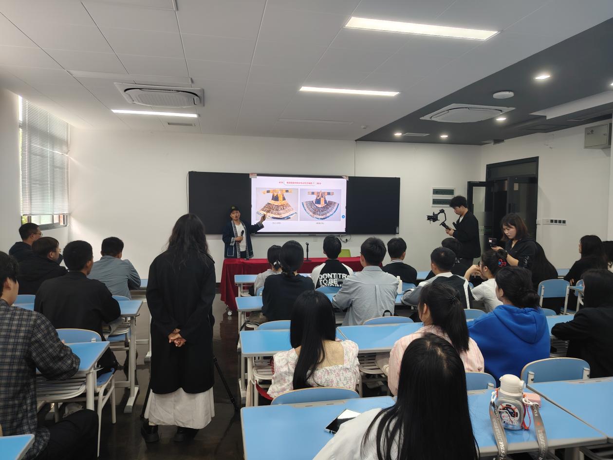 同学们积极向何老师请教关于非遗文化的问题,通过和同学们互动的形式结束了这场丰富有趣且极具意义的分享活动。最后,同学们更是希望能与何老师有机会联合开展一次苗服展,感受少数民族的文化魅力。本次“非遗文化进校园”活动在热烈的掌声中落下帷幕,不仅为同学们提供了与优秀的非遗文化传承人面对面交流的机会,也让同学们对非遗文化有了更加直观和深入的理解。