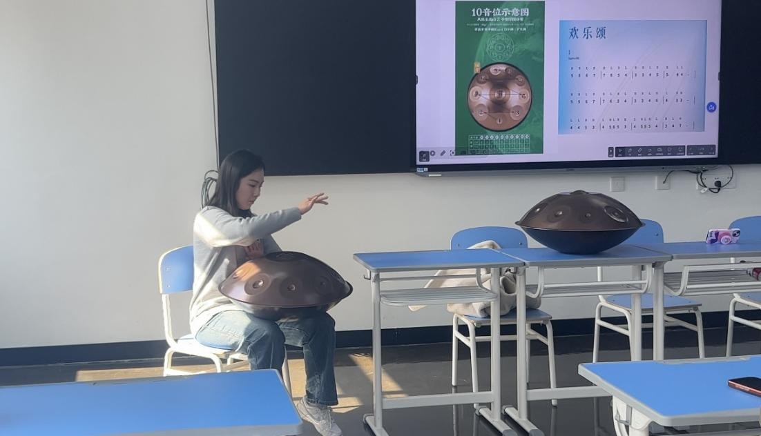 本次活动特别邀请音乐疗愈研究方向的研究生何欣芸为同学们进行音乐疗愈知识普及并现场演奏手碟曲目。她表示,“艺术不仅仅是阳春白雪,它更是一种能够直达心灵的语言,手碟与音乐疗愈更是可以让人产生情感共鸣的利器”,同时也希望通过这次分享与演奏,能点燃同学们心中对美的向往,让音乐成为未来人生中不可或缺的精神陪伴。