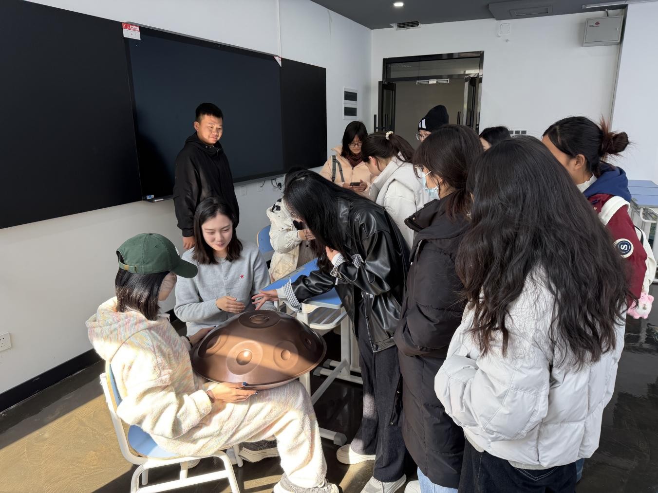于11月18日在崇德楼智慧教室开展了一场手碟音乐疗愈与体验式活动,旨在通过音乐与该乐器宁静、空灵的特质,帮助学院师生缓解焦虑,更好地进行情绪管理。
