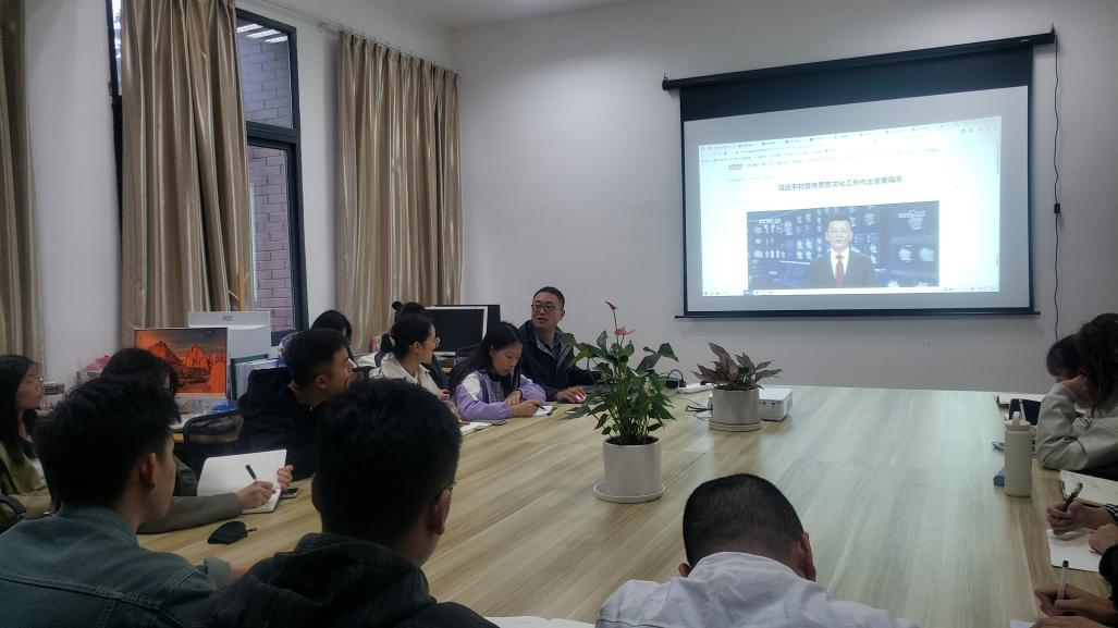 2023年10月10日下午,现代康旅产业研究团队在崇德楼202室组织开展了深入学习领会习近平文化思想的专题学习研讨会。会议深入学习领会了习近平文化思想,深刻领悟了党的十八大以来,党中央从全局和战略高度,对宣传思想文化工作作出系统谋划和部署,推动新时代宣传思想文化事业取得历史性成就。研讨会由王超教授主持,20余名研究生参会。