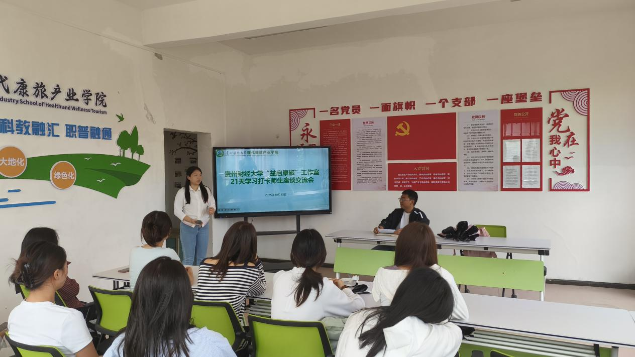 交流环节中,张勇老师首先对21天学习打卡活动的前期成效予以肯定,详细梳理了活动期间学生在知识积累、习惯养成等方面的进步,同时结合工作室“益启康旅”的核心定位,强调学习与康旅实践融合的重要性。随后,学生代表轮流发言,分享了打卡过程中的收获与难点,部分同学表示通过每日打卡培养了规律学习的习惯,在康旅相关理论知识上有了明显提升;也有同学提出在实践应用与知识转化方面存在困惑。针对学生们的疑问,张勇老师逐一耐心解答,从专业知识深化路径、实践项目参与方法等方面给出具体指导,为学生提供切实可行的学习建议。