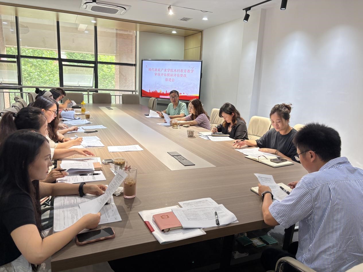 2025 72日,橘子直播 本科教育教学审核评估模拟评估整改推进会在崇德楼205会议室顺利召开。学院党委书记雍新艳,党委副书记、纪委书记韩艳,副院长(主持行政工作)王超,酒店管理专业负责人朱靓,以及教务管理科、实验与实践教学管理科、党委、团委、学生科等相关部门负责人参会,共同围绕本科教育教学审核评估模拟评估中反馈问题的整改方案展开深入研讨。